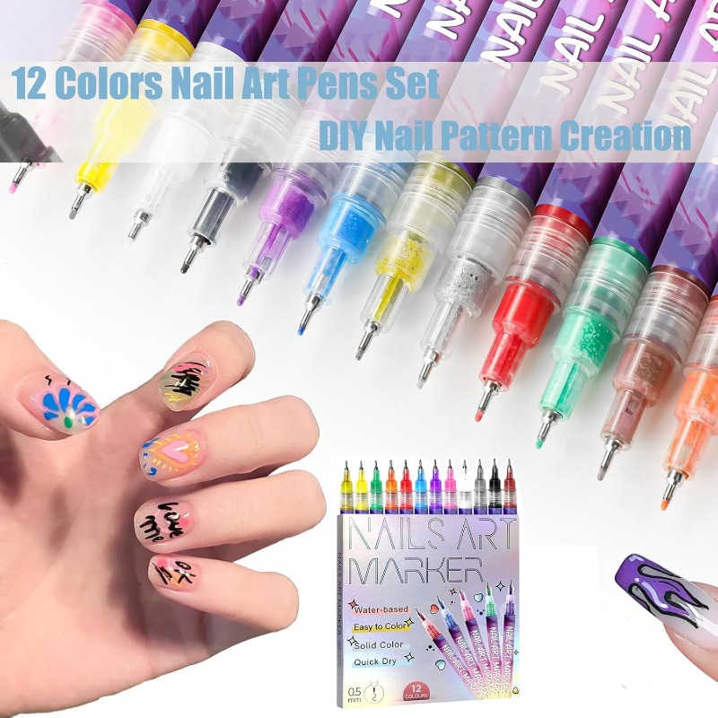These nail art markers are specially formulated for use on gel nails and also work beautifully over fully dried regular nail polish. For best results, apply a base color, let it dry completely, draw your pattern with the pens, and finish with a top coat to lock in your artwork. Perfect for both at-home manicure lovers and professional nail technicians.