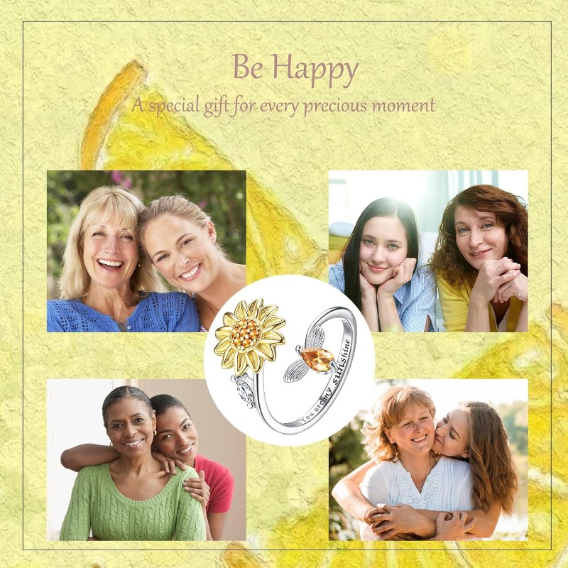 The sunflower symbolizes positivity, vitality, and growth. This adjustable open ring features a radiant sunflower with a petite bee and sparkling cubic zirconia accents — a joyful reminder to keep facing the light.